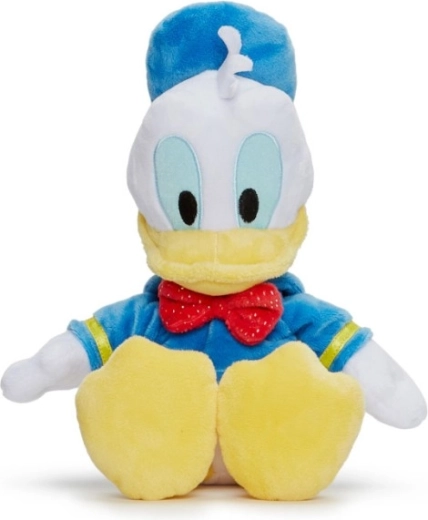 Plyšový káčer Donald vo svojom klasickom oblečení je dokonalým kamarátom na hranie pre najmenších. Zvyčajne je oblečený do modrej námorníckej uniformy (mikina a baret) s červeným motýlikom. Výška: 25 cm.