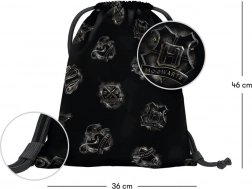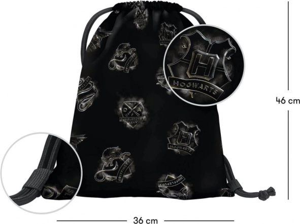 Sťahovanie pomocou pevných šnúrok zabezpečuje rýchle uzatvorenie a zároveň umožňuje nosiť vrecko na chrbte ako ľahký batôžtek. Štýlový dizajn s erbom Rokfortu poteší všetkých fanúšikov čarodejníckeho sveta.