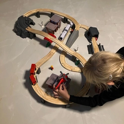 Kruzzel 22754 Drevená vláčkodráha na batérie 70 dielov, 480 cm