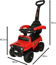Jeździk pchací auto s efektmi je perfektný pre deti vo veku od 3 do 6 rokov. Tento červený terénny vozík poskytne hodiny zábavy doma aj vonku.