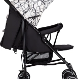 Disponuje dvojitými kolieskami pre lepšiu stabilitu, zadnými brzdami pre bezpečné zastavenie a 5-bodovými bezpečnostnými pásmi s polstrovaním pre maximálne pohodlie dieťaťa. Nastaviteľná opierka chrbta so sieťovinou a opierka nôh prispôsobia kočík potrebám vášho dieťaťa.