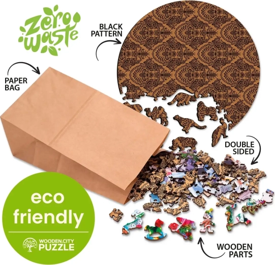 Zažite zábavu so špeciálne tvarovanými drevenými dielikmi puzzle od WOODEN CITY, ktoré ponúkajú unikátny zážitok vďaka zvieracím figúrkam a ekologickému baleniu.