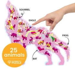 Skladačka WOODEN CITY sa odlišuje svojimi vyššími nárokmi vďaka rôzne tvarovaným dielikom, ktoré umocňujú zážitok zo skladania. Puzzle je vyrobené z pevnej drevovláknitej HDF dosky, čo zaisťuje hladké hrany bez triesok vďaka precíznemu laserovému spracovaniu.