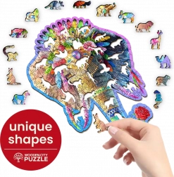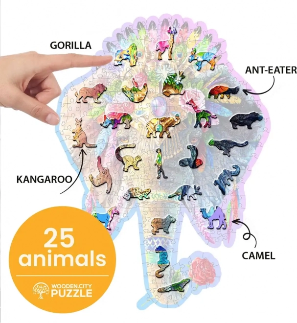 Predstavujeme vám unikátne drevené puzzle Elegantný slon od značky WOODEN CITY. Vďaka špeciálne tvarovaným dielikom, ktoré zahŕňajú motívy zvierat, sa stáva skladanie väčšou výzvou než u bežných puzzlí.