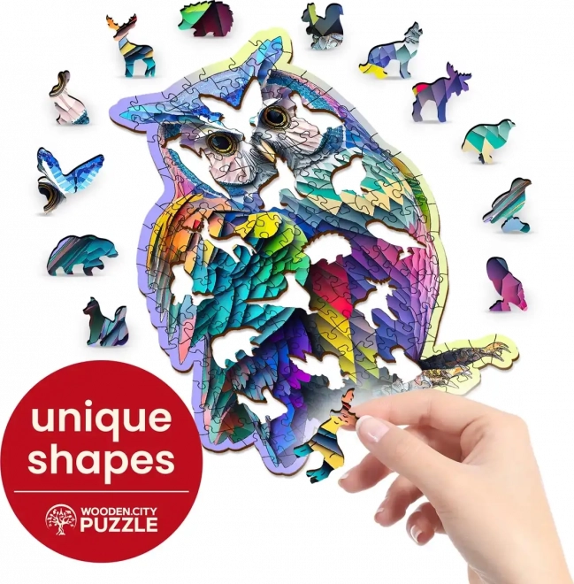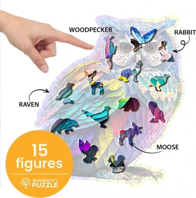 Skladanie puzzle WOODEN CITY s moderným dizajnom sovy s počtom 150 dielikov je nielen zábavou, ale aj estetickým zážitkom. Vďaka laserom vyrezávaným dielikom sa môžete tešiť na precízne spracované tvary bez triesok. Niektoré dieliky majú unikátne tvary pripomínajúce zvieratá a môžu slúžiť ako samostatné figúrky.