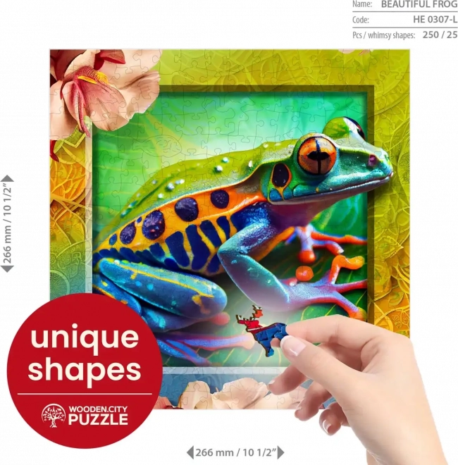 Objavte pútavý spôsob skladania puzzlí s WOODEN CITY dreveným puzzle Farebná žabka. Dieliky sú precízne tvarované laserom, aby vytvorili jedinečné zvieracie tvary, ktoré môžu slúžiť ako samostatné mini figúrky.