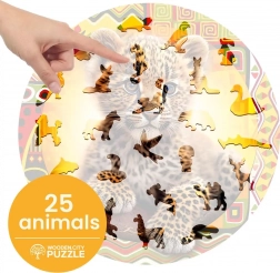 Laserom vyrezávané drevené puzzle od značky Wooden City prináša nesmiernu zábavu vďaka špeciálne tvarovaným dielikom. Poskladanie je väčšou výzvou vďaka zvieracím tvarom s detailmi, ktoré môžu stáť ako malé figúrky. Neobsahuje žiadne plastové obaly, čo podporuje ekológiu.