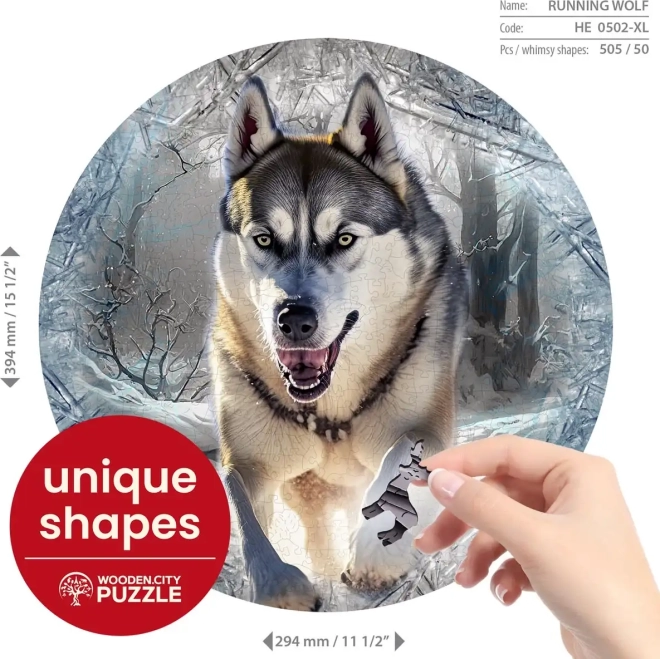 Jedinečné drevené puzzle značky Wooden City s motívom Bežiaceho Vlka prináša zábavné skladanie s unikátne tvarovanými dielikmi, ktoré môžu samostatne stáť ako figúrky.