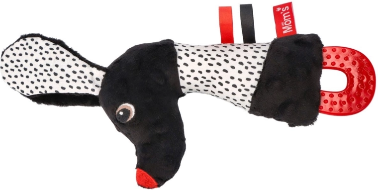 Jamiś spája hebký plyš, bavlnu a kvalitný silikón do jednej zmyslovej hračky, ktorá podporuje prirodzený rozvoj bábätka. Pískatko v hlavičke vydáva jemný zvuk, ktorý upúta pozornosť a rozvíja sluchové vnímanie, zatiaľ čo kontrastný čiernobiely dizajn na chrbte a uškách stimuluje zrak.