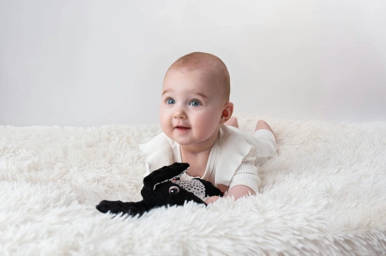 Čiernobiele vzory na chrbte a uškách podporujú sústredenie a zrakové vnímanie novorodencov.