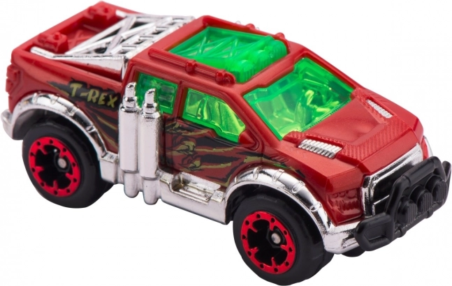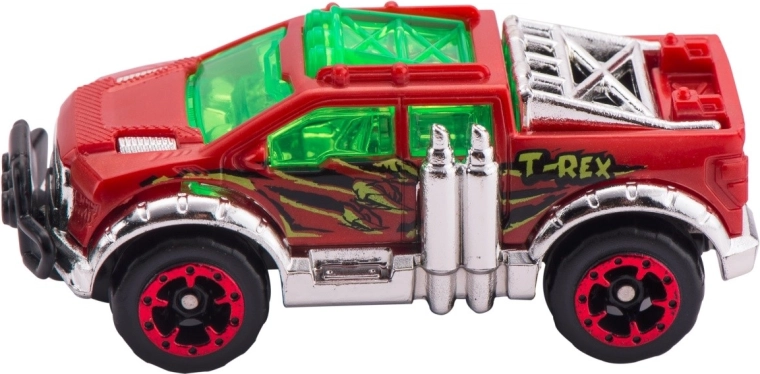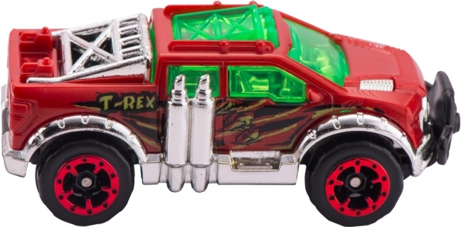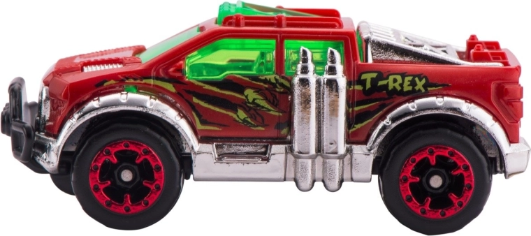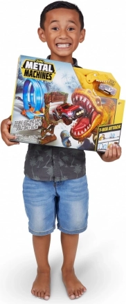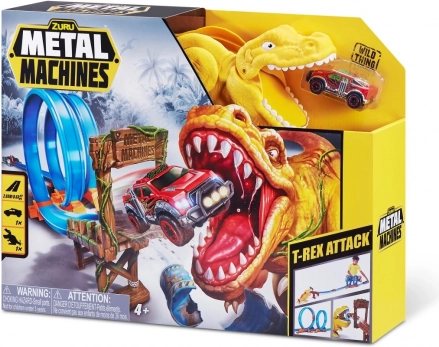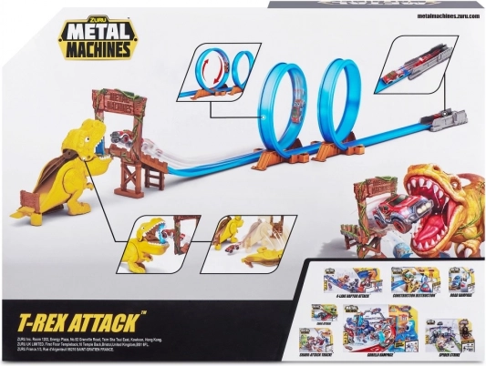 Súčasťou balenia je autíčko Metal Machines, prvky na zloženie dráhy s dĺžkou 2,63 m a figúrka T-Rexa, ktorý loví prechádzajúce autíčka. Porazte dinosaura, ktorý terorizuje mestečko, a užite si hodiny zábavných pretekov a kaskadérskych súbojov s touto skvelou súpravou od ZURU!