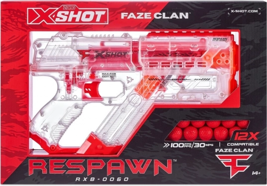 S blasterom X-Shot FaZe Respawn sa ocitnete priamo v centre e-športovej akcie. Táto unikátna hračka kombinuje herný svet e-športu s kvalitou a spracovaním značky X-Shot. Zaujmite súperov svojím módnym priehľadným dizajnom, ktorý vám umožní sledovať vnútorný mechanizmus blasteru. X-Shot FaZe Respawn je navrhnutý pre streľbu špeciálnymi guľkami o rýchlosti až 30 metrov za sekundu. Zábava a adrenalín sú zaručené!