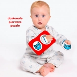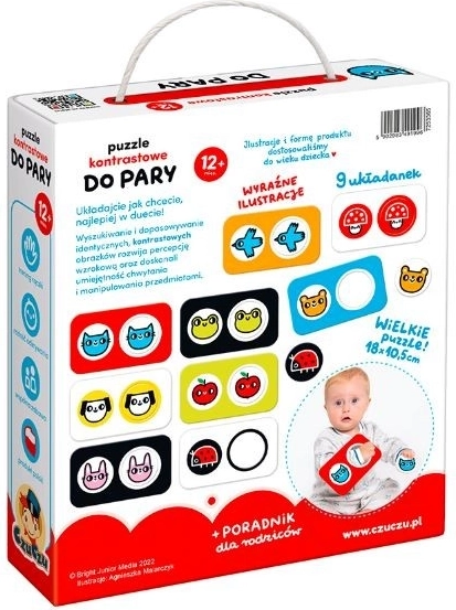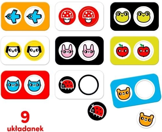 Hľadanie dvojíc je skvelý spôsob, ako rozvíjať zrakové vnímanie, koordináciu oko–ruka a sústredenie. Kontrastné čiernobiele a výrazne farebné obrázky z obľúbených detských tém pomáhajú batoľatám ľahko rozpoznávať tvary a párovať rovnaké motívy. Dieliky sú veľké, pevné a príjemné do malých rúčok.
