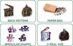 Vydajte sa do Nočného New Yorku s naším luxusným 2v1 dreveným puzzle. Precízne vyrezané z kvalitného materiálu, toto puzzle ponúka unikátne tvarované dieliky, ktoré samostatne tvoria zvieratá, objekty alebo budovy, a zároveň zostáva šetrné k životnému prostrediu.