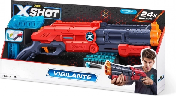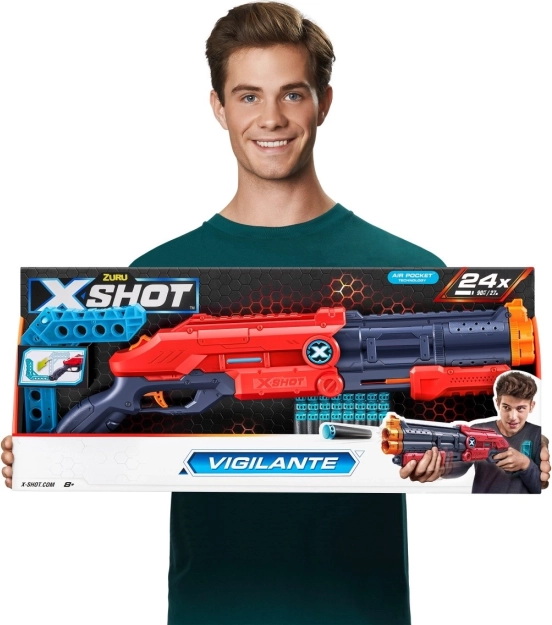 Detská pištoľ X-Shot Vigilante ponúka vzrušujúci zážitok z hry vďaka svojím dvom hlavným vlastnostiam - presnosti a sile. Je vybavená dvojitou hlavňou a nastaviteľnou pažbou, vďaka čomu zasiahne cieľ na vzdialenosť až 27 m. Nemusíte sa obávať nedostatku munície, pretože súčasťou balenia je aj doplnkový úložný priestor na šípky.
