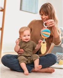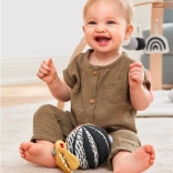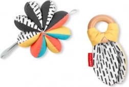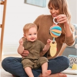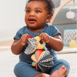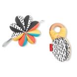 Naša hračka pre deti 3 v 1 DISCOVEROSITY poskytuje tri rôzne spôsoby hrania vďaka možnosti jednotlivé predmety používať samostatne alebo ich spojiť dohromady. Mäkké chrastítko má na jednej strane kontrastný vzor a na druhej výrazné farby, zatiaľ čo drevený krúžok je vyrobený z udržateľných materiálov. Tento komplexný dizajn je ideálny ako pre úchop, tak pre hryzenie.