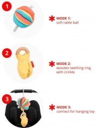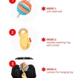 Hračka DISCOVEROSITY 3 v 1 pre kočík bola navrhnutá v spolupráci s odborníkmi na Montessori vzdelávanie. Podporuje vizuálnu stimuláciu, rozvíja motorické schopnosti a je ideálna pre použitie doma aj na cestách.