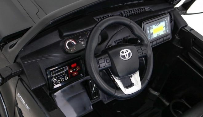 Interiér vozidla je vybavený čiernym ekokoženkovým sedadlom s bezpečnostnými pásmi, ktoré poskytujú maximálne pohodlie a ochranu. Autíčko je osadené LED svetlami vpredu aj vzadu a audiopanelom s modernými funkciami ako je Bluetooth a FM rádio.
