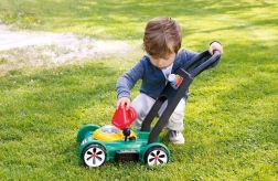 Madlo padne do detskej ruky, deti sa s hračkou ľahko pohybujú a s radosťou „kosia“ trávnik ako skutoční pomocníci. Veselé farby, bezpečné materiály a premyslené detaily podporujú dlhodobé a zmysluplné hranie.