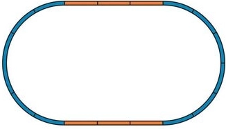 - 12× oblúk R2 s podložím 422 mm, 5× rovná 231 mm, 1× rovná pre spojovací klip