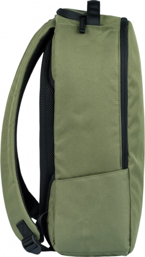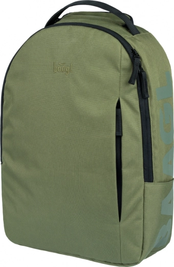 Štýlový mestský batoh BAAGL eARTh v khaki farbe je vyrobený zo 100 % recyklovaného, vodeodolného materiálu. Ponúka ergonomicky tvarovaný chrbát, nastaviteľné ramenné popruhy, polstrované vrecko na 15" notebook a praktické predné a horné vrecká na zips. S nízkou hmotnosťou 500 g, objemom 18 l a nosnosťou až 7 kg je ideálny do školy, do mesta aj do práce.