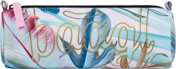 Puzdro zdobí pestrofarebný dizajn s mixom tyrkysovej, zlatej a ružovej farby, ktorý zaujme a dodá šarm vašim školským potrebám.