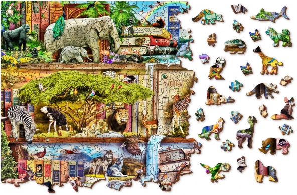 WOODEN CITY Drevené puzzle Úžasné kráľovstvo zvierat 2v1, 1010 dielikov EKO