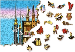 Toto prémiové drevené puzzle prináša originálny motív hudobného mesta s nástrojmi a vežami, ktorý si zamilujú dospelí aj zvedavé deti. Dieliky sú vyrezané laserom z pevnej HDF dosky (3–4 mm), majú hladké hrany bez triesok a časť z nich tvoria špeciálne tvary zvierat, stavieb a predmetov. Vďaka nim je skladanie náročnejšie, no zároveň nesmierne zábavné a vizuálne pôsobivé.