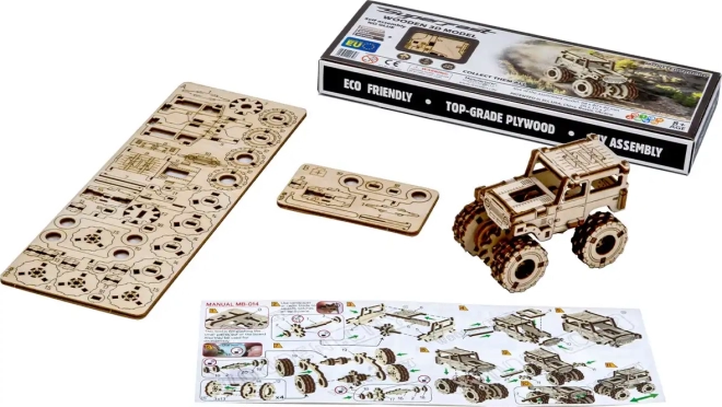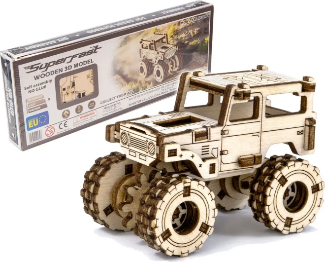 Objavte radosť zo skladania s drevenými 3D puzzle, ktoré vám umožnia vytvoriť vlastný model monster trucku inšpirovaného ikonickým SUV TOYOTA FJ40. Sada je bez lepidla a skrutiek, takže montáž je čistá a rýchla. Vďaka jednoduchej montáži, 64 dielikom, krátkemu času montáže (cca 30 minút) a ekologickému prevedeniu bez plastov je to skvelá voľba pre začiatočníkov aj pokročilých. Model z brezovej preglejky môžete navyše vyfarbiť podľa svojich predstáv.