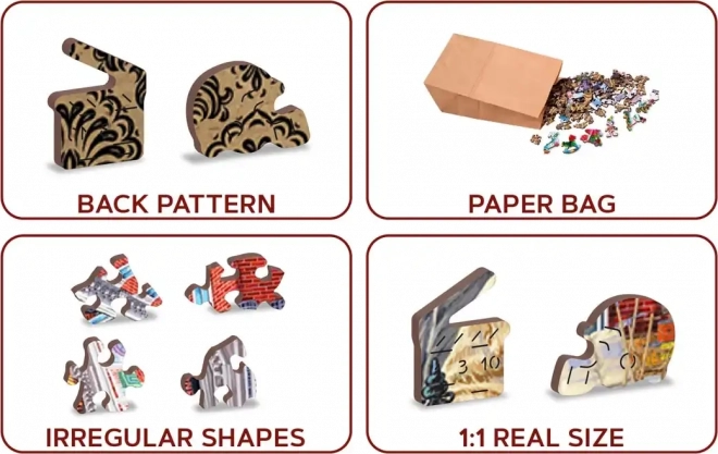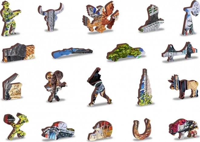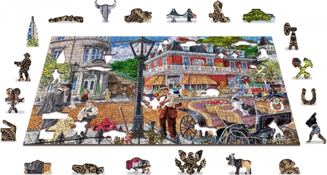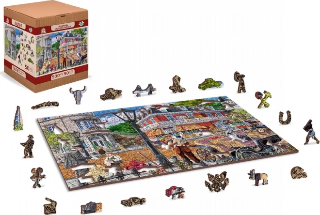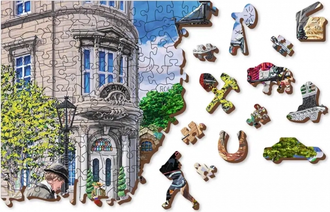 Užite si chytľavé skladanie s dreveným puzzlom WOODEN CITY, ktoré prináša farebnú scénu pulzujúcej historickej ulice. Špeciálne tvarované dieliky s jemnými laserovými detailmi zvyšujú zábavu aj estetický dojem – niektoré dieliky v tvare zvierat či predmetov možno postaviť ako malé figúrky.