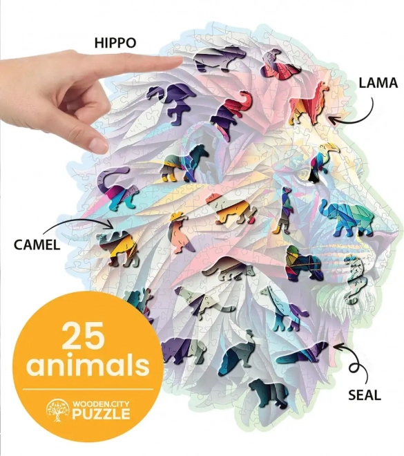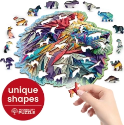 Doprajte si originálny zážitok zo skladania s dreveným puzzle Moderný lev od WOODEN CITY. Špeciálne tvarované dieliky, z ktorých časť má podobu zvierat, vytvárajú pri zostavení pôsobivý motív so zvýraznenými laserovými detailmi. Niektoré dieliky môžu samostatne stáť ako drobné figúrky.