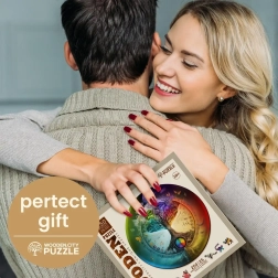 Doprajte si originálny zážitok zo skladania s dreveným puzzlom WOODEN CITY Strom života. Špeciálne tvarované dieliky so zvieracími motívmi a jemnými laserovými detailmi vytvárajú atraktívny obraz a zároveň prinášajú väčšiu výzvu než klasické puzzle. Niektoré kúsky možno postaviť samostatne ako roztomilé figúrky.