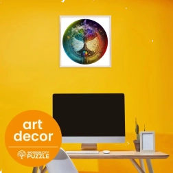 Puzzle je vyrobené z pevnej HDF dosky s hrúbkou 3–4 mm, takže zvládne časté skladanie aj manipuláciu. Vďaka presnému laserovému rezu sú hrany hladké a bezpečné. V balení nájdete aj samostatnú predlohu, ktorá pomôže pri riešení zložitejších častí motívu.