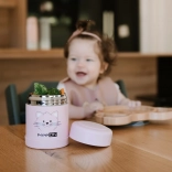 Termonádoba je vyrobená z kvalitnej nerezovej ocele a má objem 350 ml, čo je ideálna veľkosť pre detské porcie. Je ľahko otvárateľná a zatvárateľná a skvele tesní, aby sa obsah nevylial. Vďaka dvojitej nerezovej stene zostávajú nápoje teplé až 12 hodín a studené až 24 hodín.