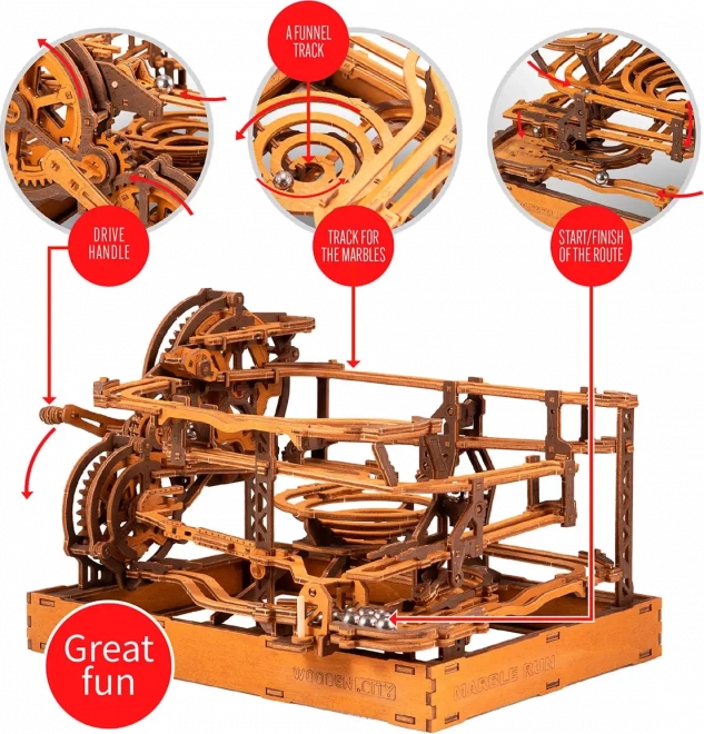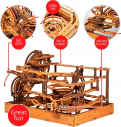 Toto 3D drevené puzzle nielen zdobí interiér, ale tiež ponúka hodiny zábavy a výzvy. Vyrobené z ekologickej brezovej preglejky s vysokou hustotou, tento model vyžaduje premýšľanie a zručnosť pri stavbe. Dizajn simuluje funkčný mechanizmus, kde kovové guľôčky prechádzajú cez prepracované dráhy.