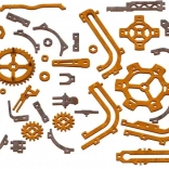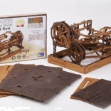 Upozornenie: Na zostavenie je potrebný odlamovací nôž, nožnice, brúsny papier a vosková sviečka (nie sú súčasťou). Pre správne fungovanie je potrebné navoskovať nápravy a ozubené kolieska.