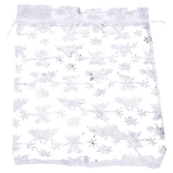 Elegantné organzové vrecúško s vianočnými vločkami je ideálne na balenie darčekov. Dostupné v zlatej a striebornej farbe.