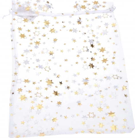Urobte si svoje Vianoce nezabudnuteľnými s týmto estetickým vrecúškom z organzy. S jeho priehľadným dizajnom sa motív hviezd stáva decentným doplnkom akéhokoľvek darčeka či vianočnej dekorácie.