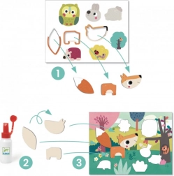 Táto štartovacia kolážová sada DJECO je ideálnou voľbou na prvé tvorenie. Veľké a pevné diely z hrubej lepenky sa ľahko oddeľujú aj v malých rúčkach a bezpečné lepidlo je prispôsobené deťom od 18 mesiacov. Vďaka prehľadnej obrazovej brožúrke deti zvládnu tvoriť samostatne a s radosťou.