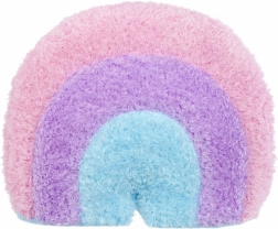 Plyšová hračka v tvare dúhy v ružovej, fialovej a modrej farbe s priateľským úsmevom. Ideálna pre dekoráciu alebo ako maznáčik pre deti.
