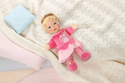 Princeznička BABY born for babies je ideálnou prvou bábikou pre bábätká a batoľatá. Hebké telíčko láka k túleniu, zatiaľ čo ľahká vinylová hlavička so zlatou korunkou dodáva hračke kráľovský vzhľad. Integrované vrecká v rukách premenia bábiku na maňušku – stačí vsunúť prsty a začať rozprávať príbehy.