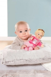 Roztomilá bábika–maňuška BABY born pre najmenších vo veľkosti 26 cm prináša jemné mojkanie, čarovné hranie rolí a ľahkú údržbu. Má mäkké vypchaté telíčko, vinylovú hlavičku so zlatou korunkou a rukavičkový dizajn s vreckami v ručičkách, vďaka ktorému bábika ožije pri každom pohybe. Vhodná od narodenia a dá sa ručne prať.