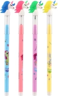 Roztomilá ceruzka s motívom jednorožca na každodenné písanie aj skicovanie. Obsahuje 10 vymeniteľných hrotov pre stále ostrú stopu, dostupná v 4 veselých farbách. Ideálna do školy, kancelárie aj ako milý darček pre milovníkov jednorožcov. Nie je hračka.