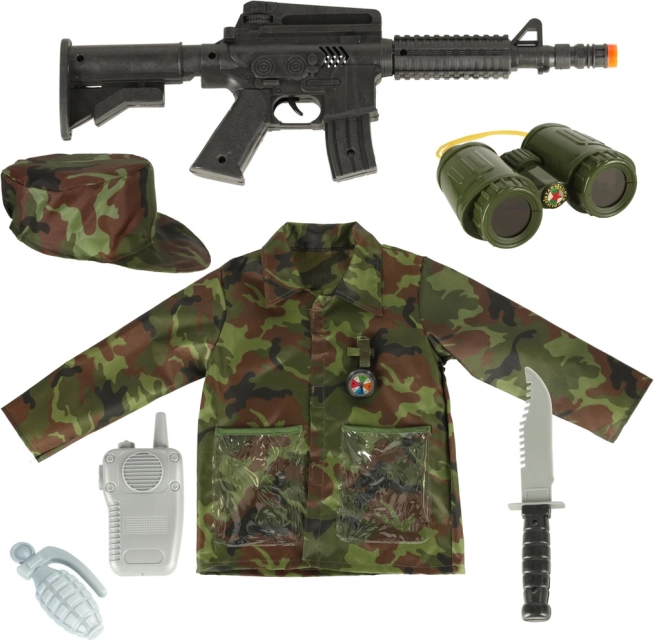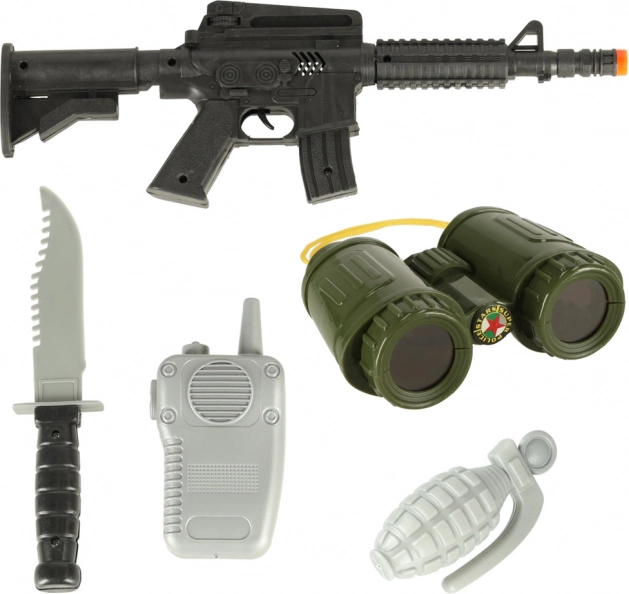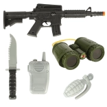 Súprava obsahuje plastové doplnky ako je zbraň, nôž, vysielačka a ďalšie, pre realistickú hru a rozvoj fantázie.