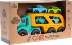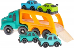 Zábavná odťahovka s prívesom a štyrmi autíčkami z ekologického BIO plastu poteší deti od 18 mesiacov. Ponúka svetelné efekty, reálne zvuky motora, cúvania a klaksón aj veselé melódie. Príves možno odpojiť a robustný materiál je bezpečný, netoxický a odolný. Batérie 3× LR44 sú súčasťou balenia.