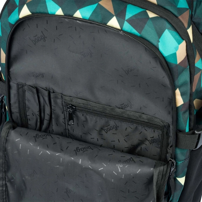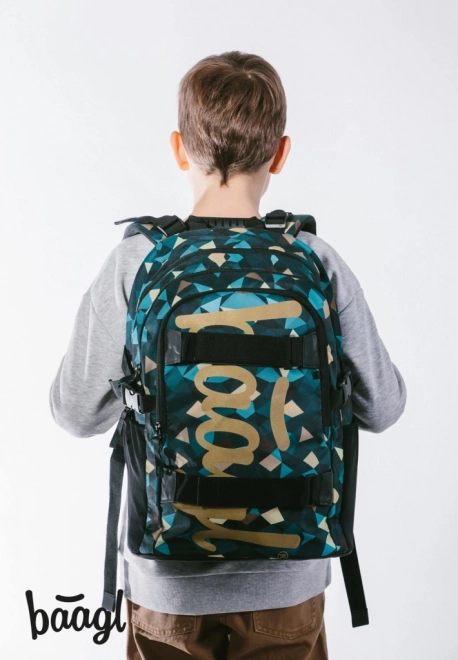 Školský batoh BAAGL Skate Polygon je navrhnutý tak, aby spĺňal všetky požiadavky moderného študenta. Ergonomický dizajn zaisťuje pohodlie vďaka plne nastaviteľným ramenným, prsným a bočným kompresným popruhom. Skladá sa z troch samostatne uzatvárateľných priehradiek s vnútorným organizérom a vreckom ideálnym pre 15-palcový notebook alebo tablet.