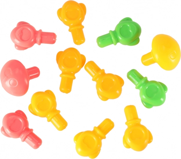 Pestré kolíky podporujú rozpoznávanie farieb a triedenie. Na niektorých otvoroch sú číslice, čo motivuje k prvým pokusom o počítanie.