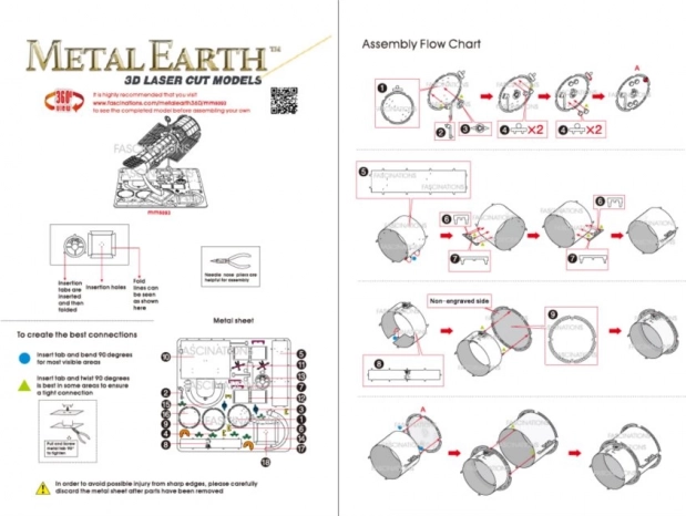 Model sa skladá bez lepidla – dieliky sa spájajú pomocou drobných zámkov a ohýbaných jazýčkov. Odporúčané pre vek 14+. Hotový model má kompaktné rozmery cca 7,5 × 6 × 5 cm, takže skvele zapadne na každý pracovný stôl.
