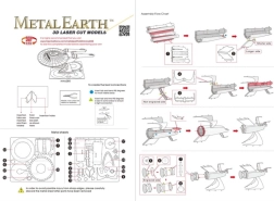 Jednotlivé diely vyberte z kovových plátkov, v prípade potreby použite malé štiepacie nožničky (nie sú súčasťou). Dieliky sa spájajú pomocou zámkov tvorených úchytom (zobáčikom) a otvorom. Zobáčik ohnite pomocou malých tenkých klieští (nie sú súčasťou) a postupne spojte všetky zámky, až vznikne veľmi realistický majstrovský kúsok!
