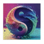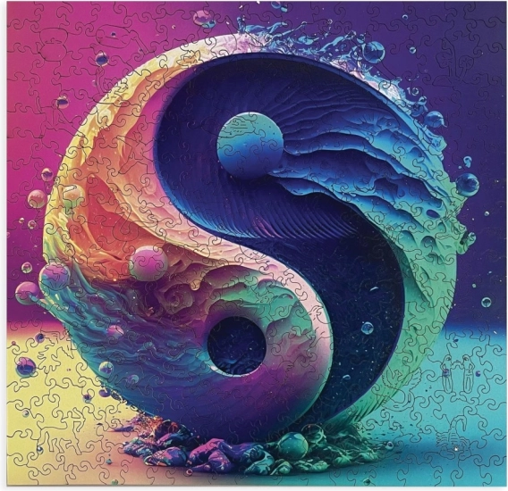 Puzzle zaujme moderným a farebným motívom Yin Yang, ktorý symbolizuje rovnováhu a harmóniu. Prechody od tyrkysovej po fialovú sú osviežujúcim zážitkom pre oči.